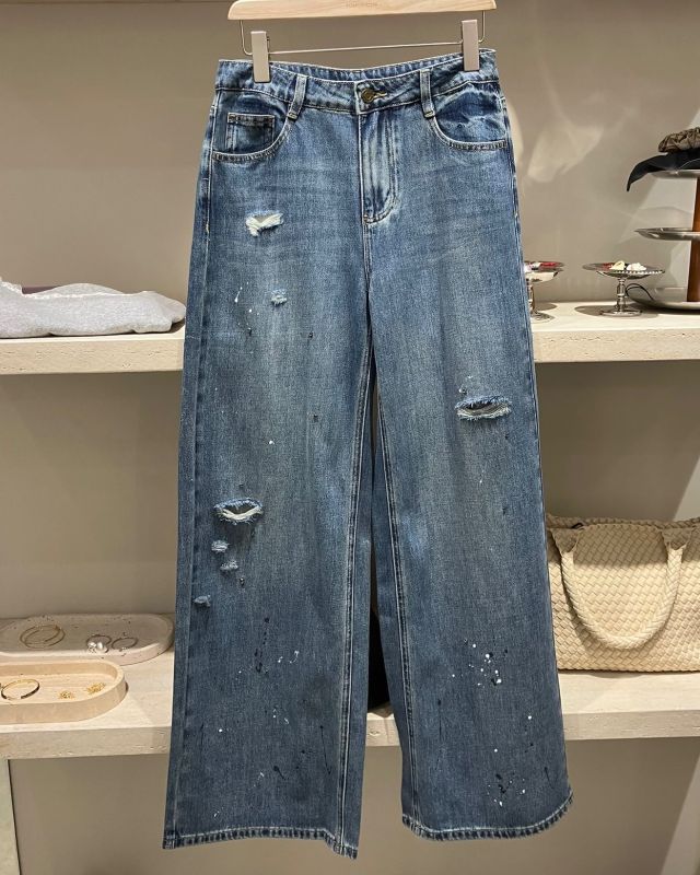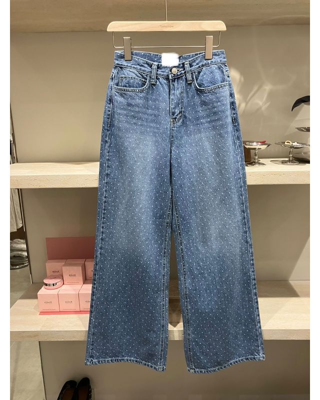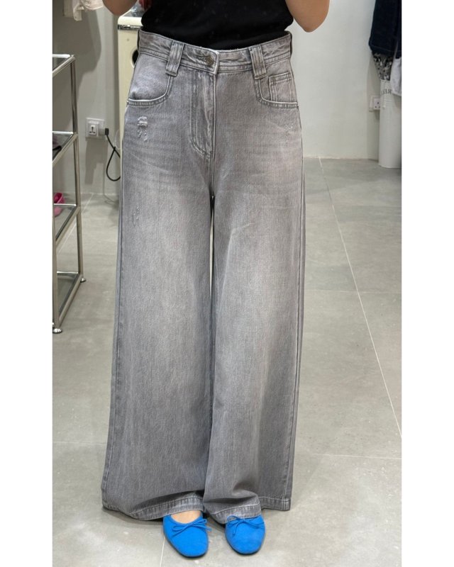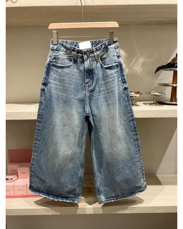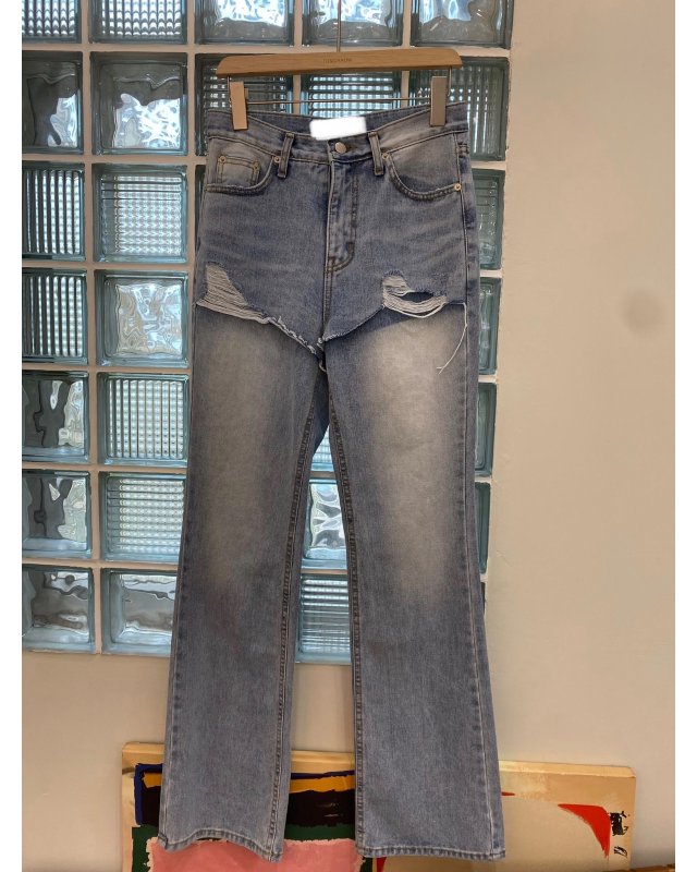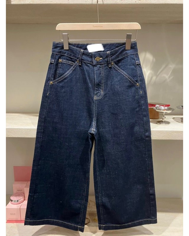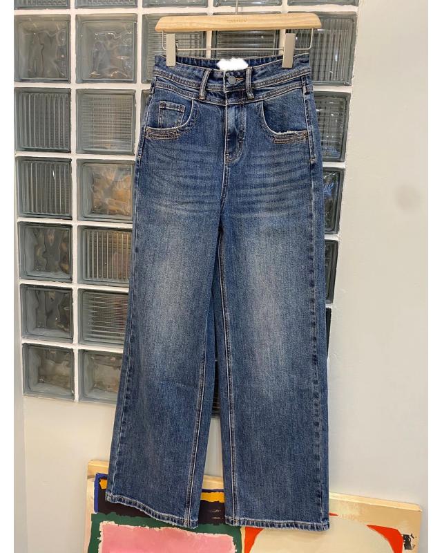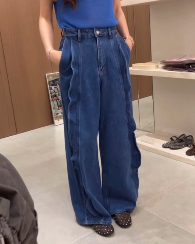 J445|浪漫荷葉剪裁闊腳牛仔褲