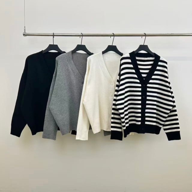 SET155 V領針織外套+排扣羅紋吊帶背心套裝