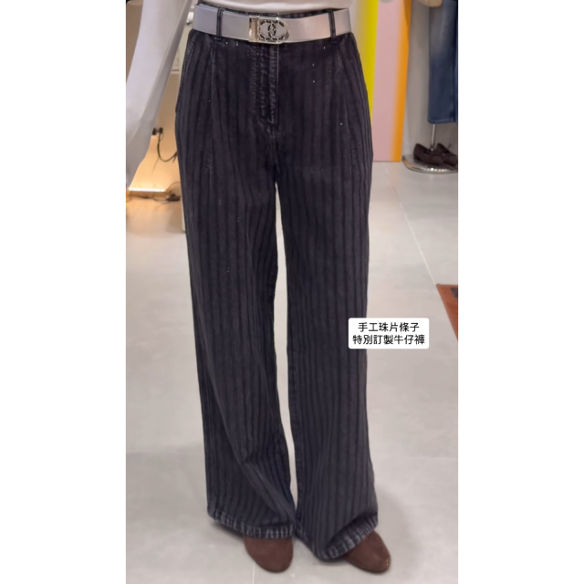 J111 手工珠片直紋牛仔褲