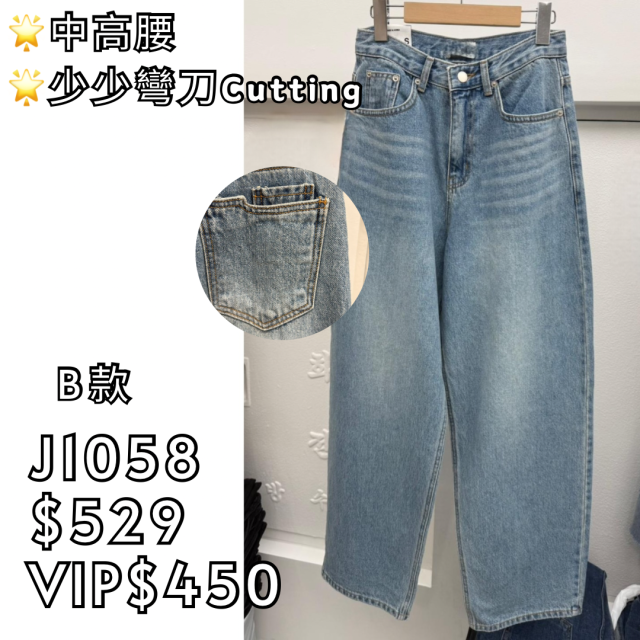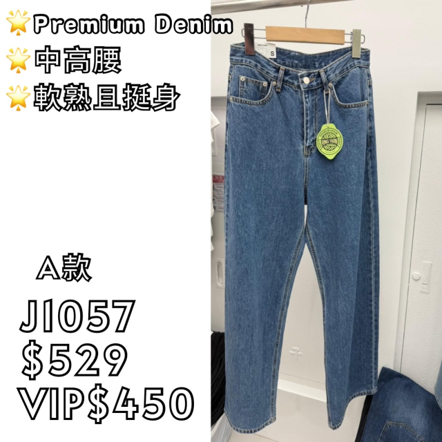 (A款) J1057 中高腰軟熟直腳牛仔褲