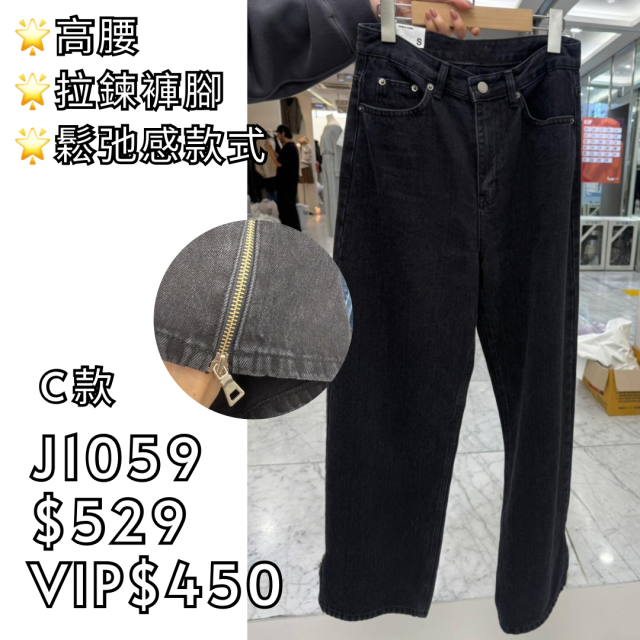 (C款) J1059 高腰拉鏈腳鬆馳感牛仔褲