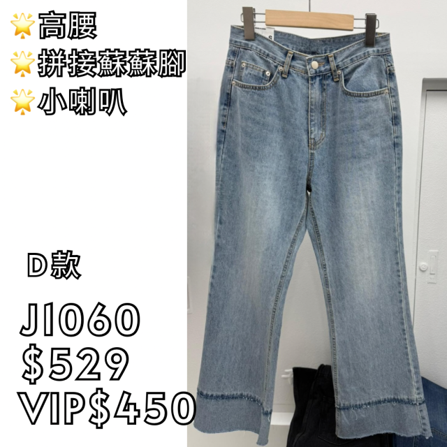 (D款) J1060 高腰拼接蘇蘇腳小喇叭牛仔褲