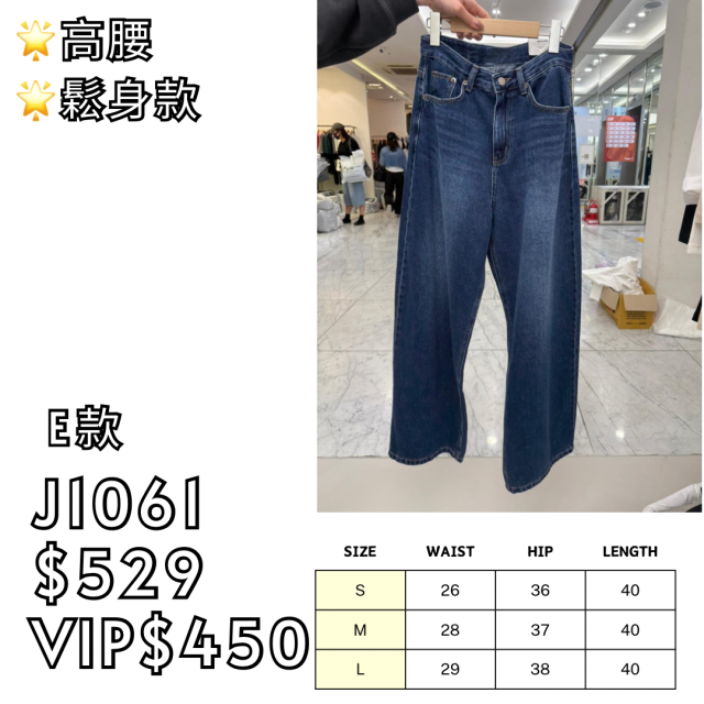 (E款) J1061 高腰包容所有腿型闊腳牛仔褲