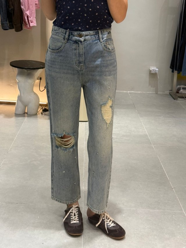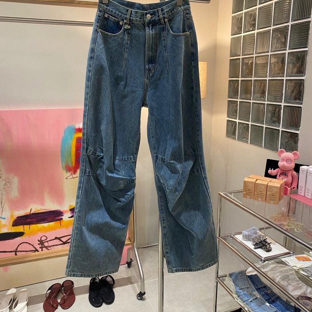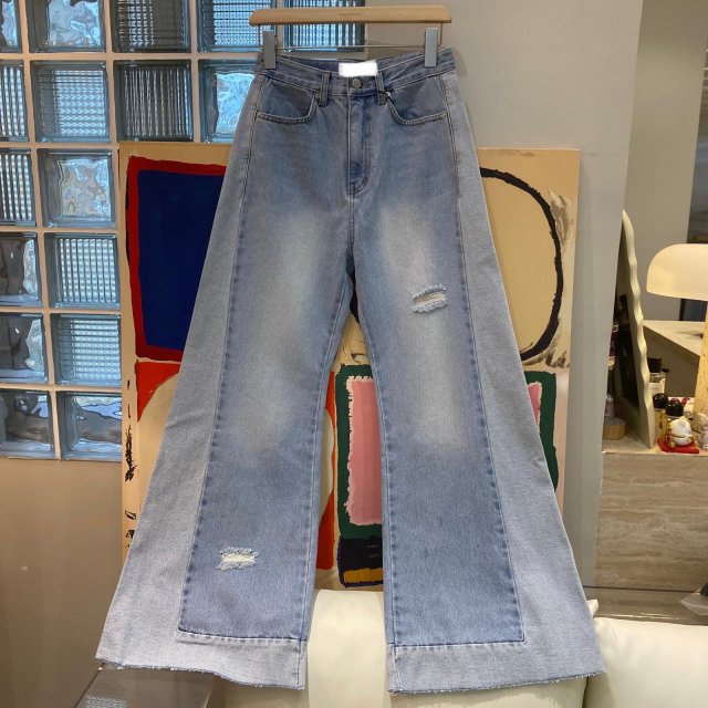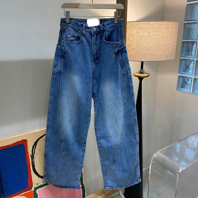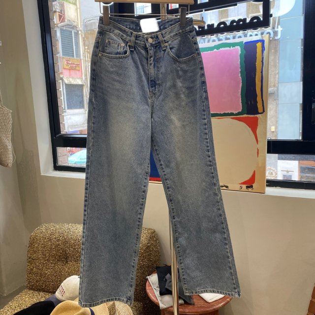 88J276 高級感軟糯冰藍條紋牛仔褲