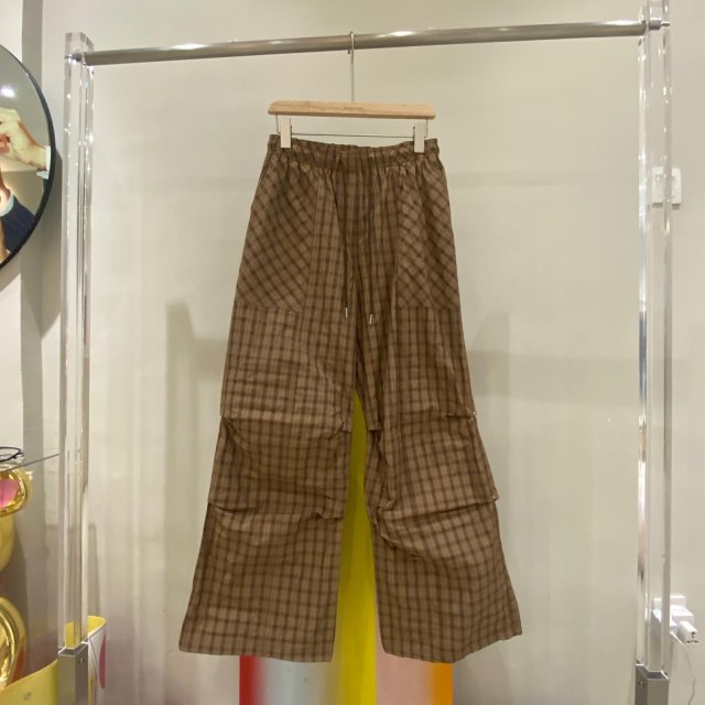 P859 鬆弛感格紋闊腿褲