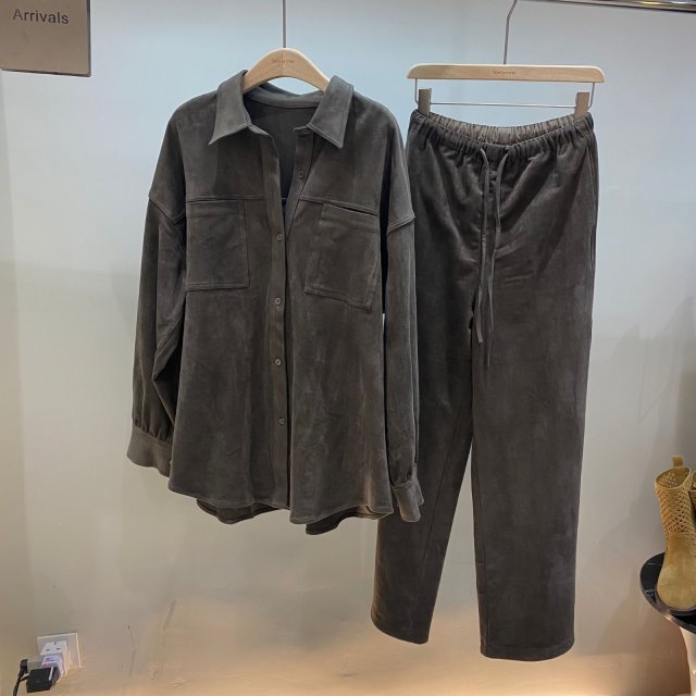 雙袋麂皮恤衫 + 麂皮休閑褲