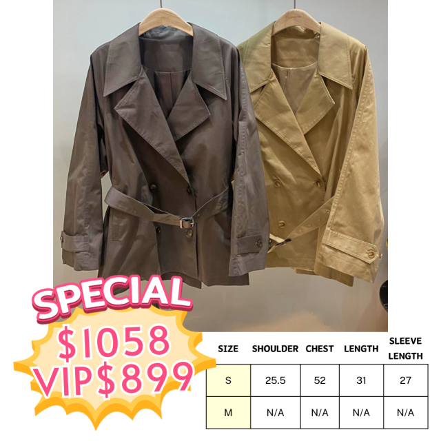 JK1030 反領孖襟闊手袖連腰帶外套