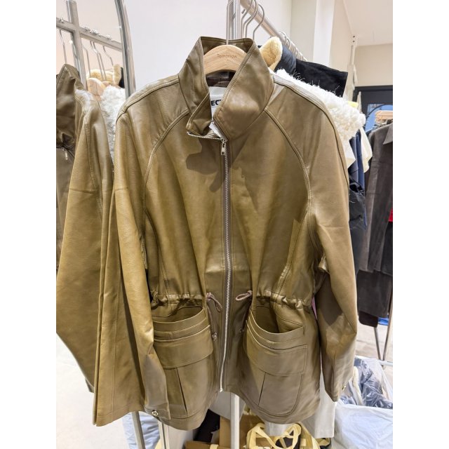 JK10137 修腰工裝風皮外套