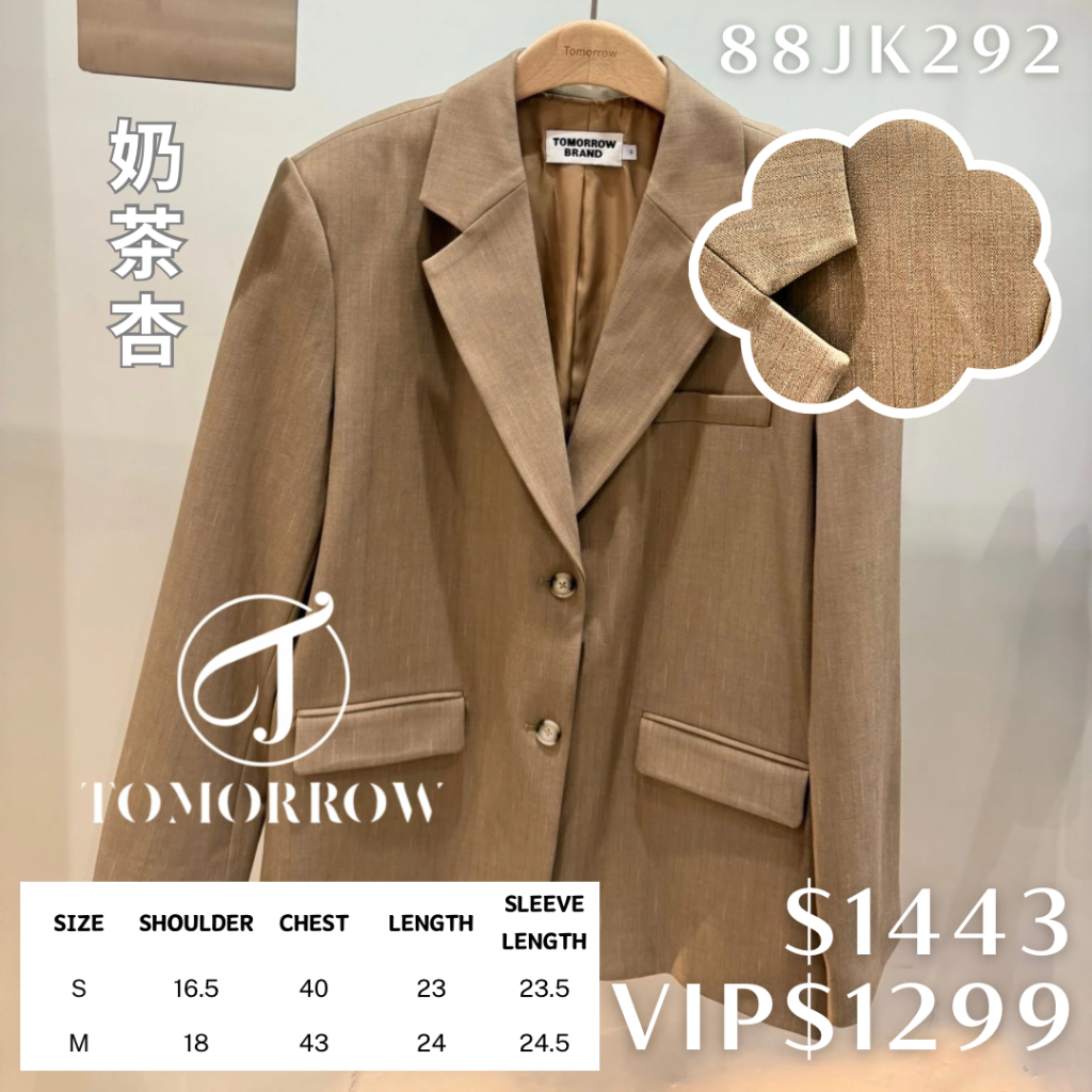 88JK292 ✨限量款✨高級奶茶杏暗紋西裝外套