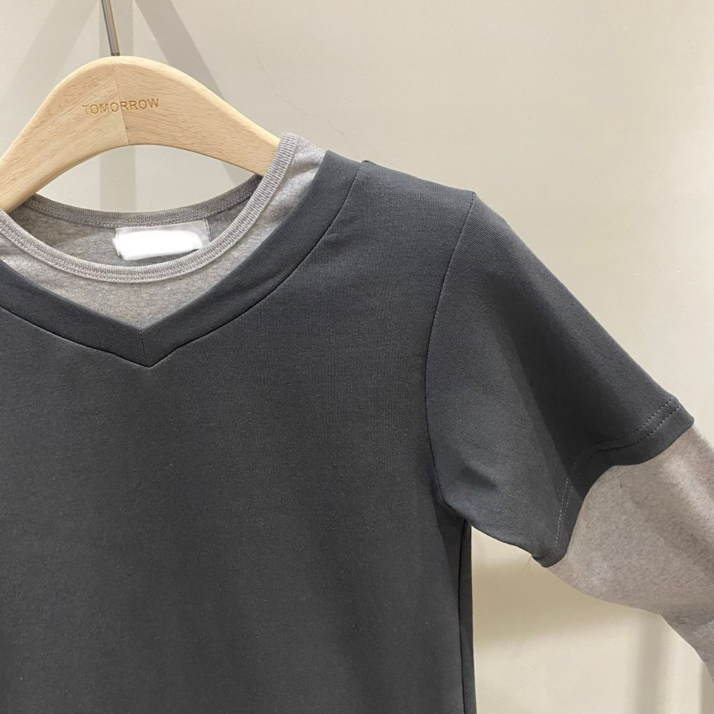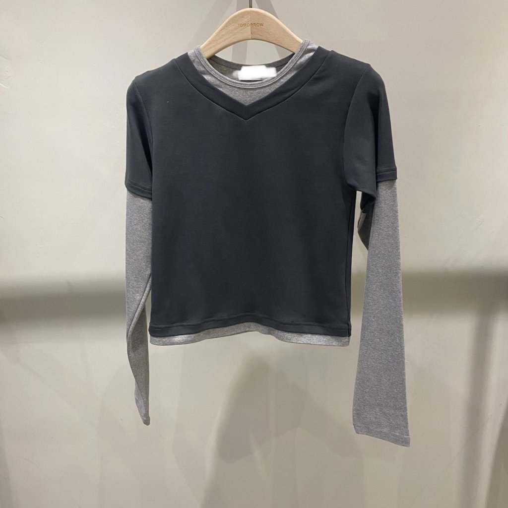 T1012 假兩件拼接長袖上衣