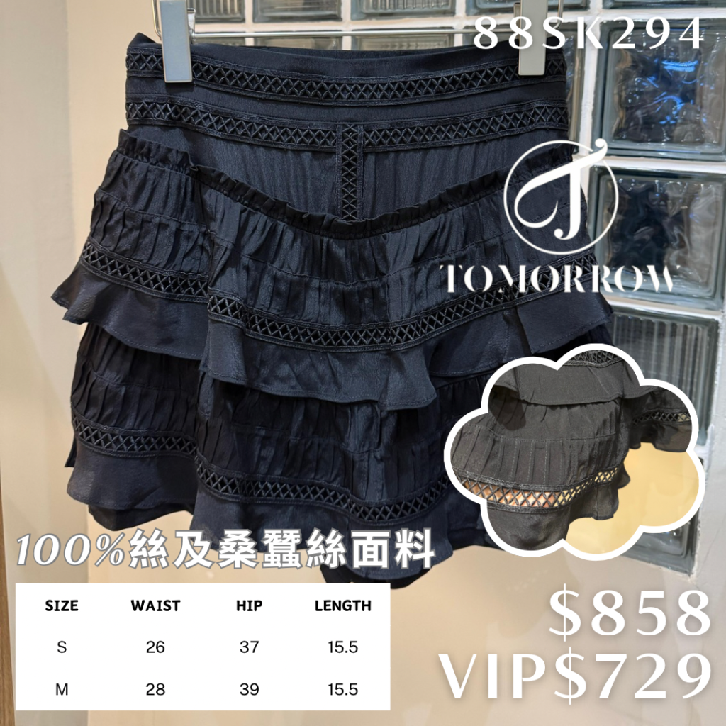 88SK294 桑蠶絲鏤空花邊層疊短裙