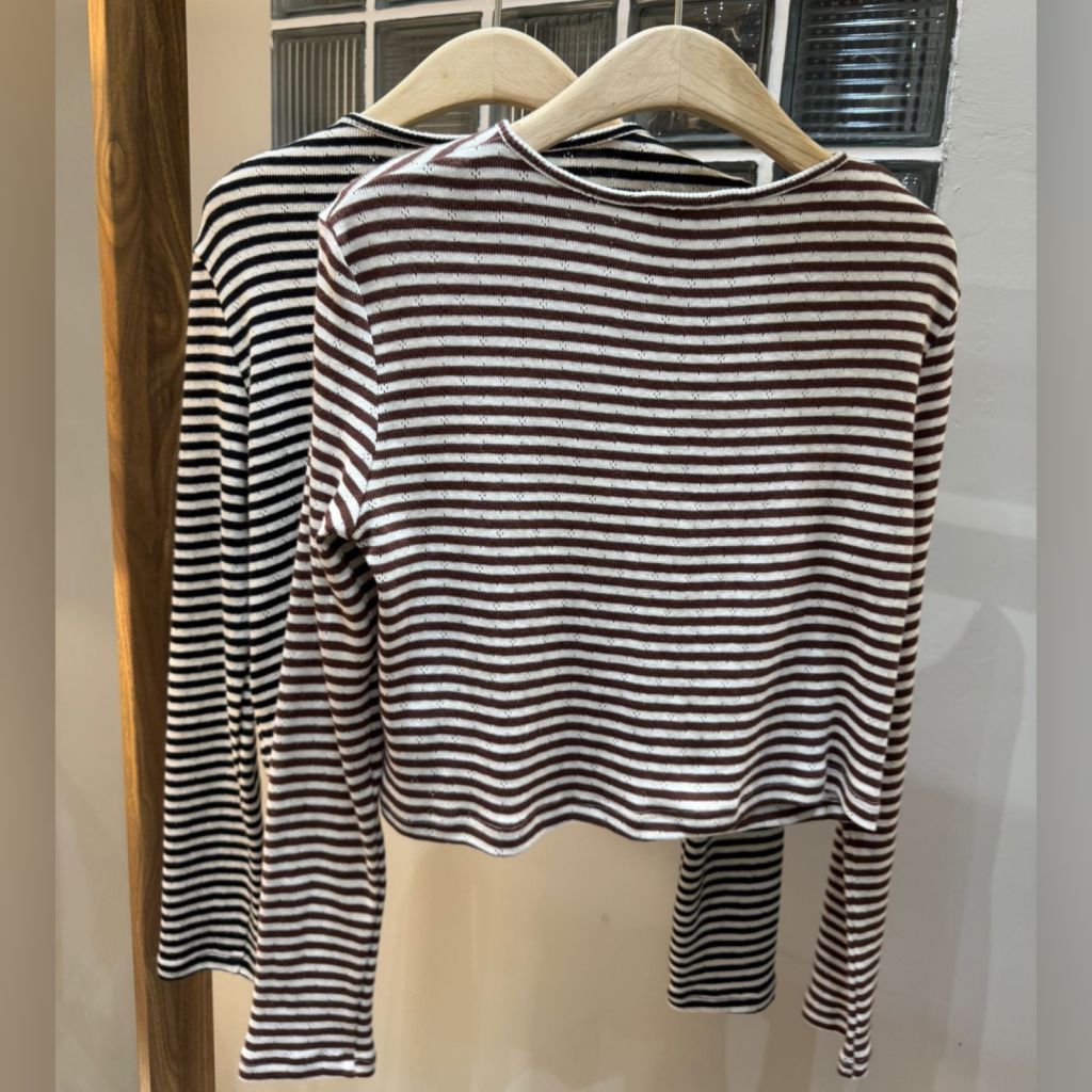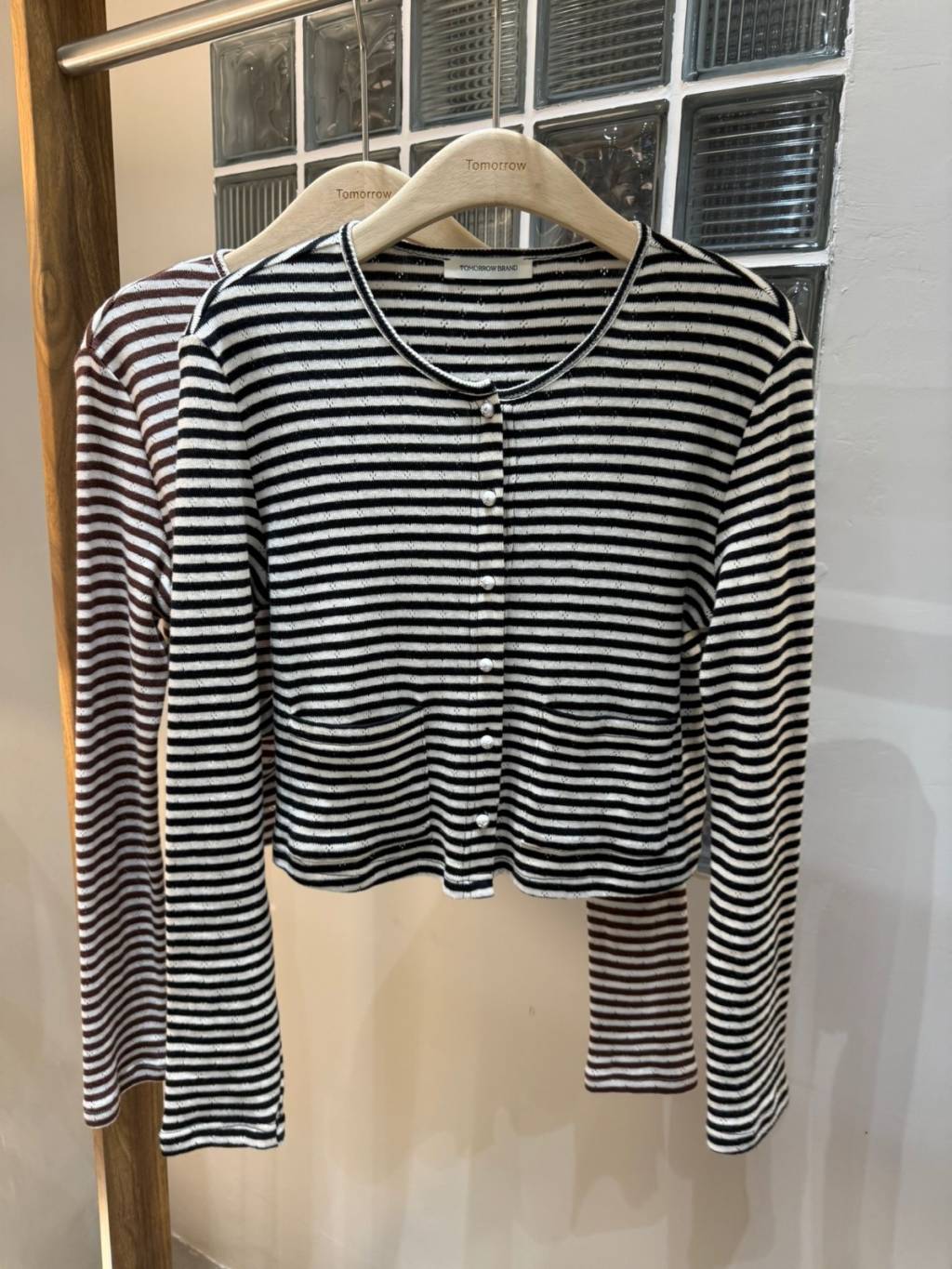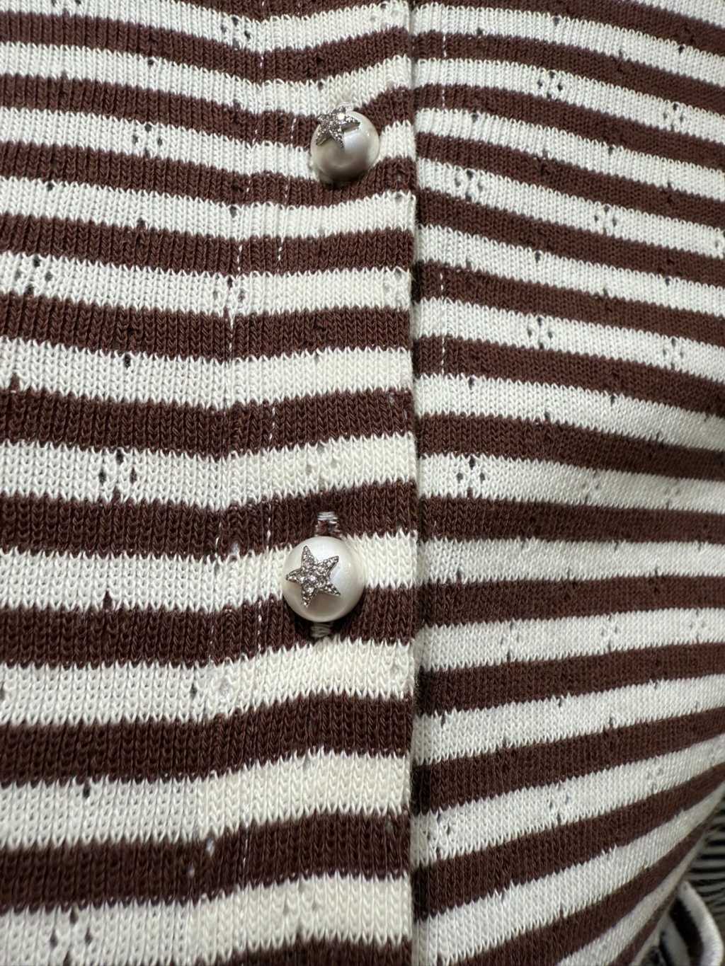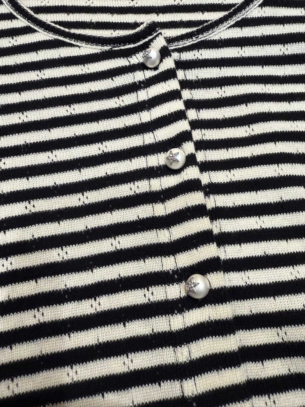 呢件條紋針織開衫真係細節滿分!黑白、啡白兩款經典橫間百搭又耐看,仲有星星珍珠鈕扣做點綴,非常精緻🫶🏻🫶🏻