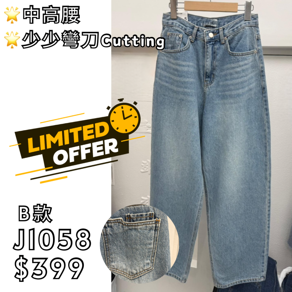 主頁 (B款) J1058 中高腰高低級褲腳牛仔褲