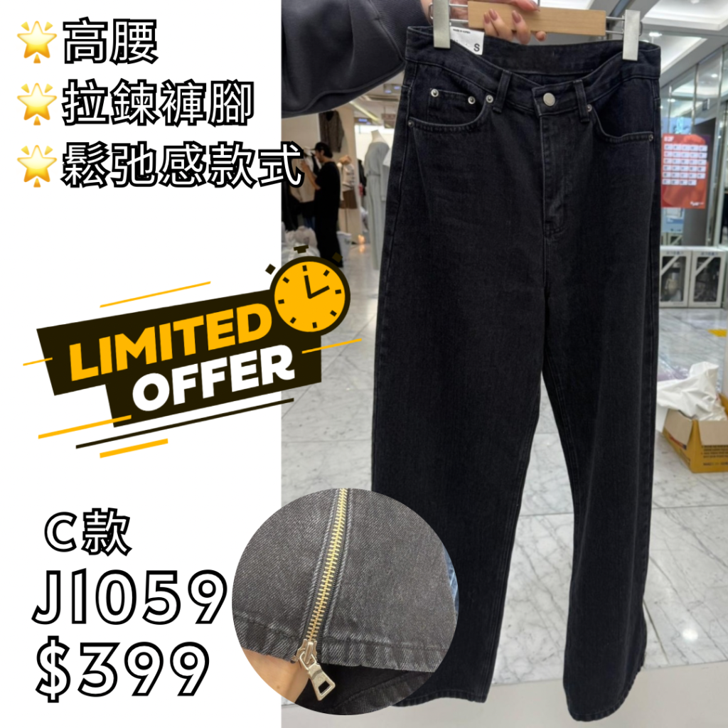 (C款) J1059 高腰拉鏈腳鬆馳感牛仔褲