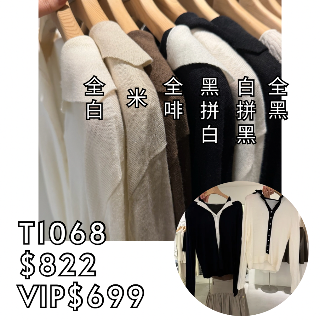 T1068 羊毛混紡拼色長袖針織上衣