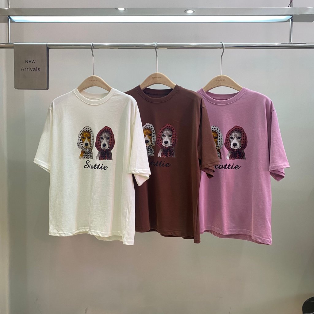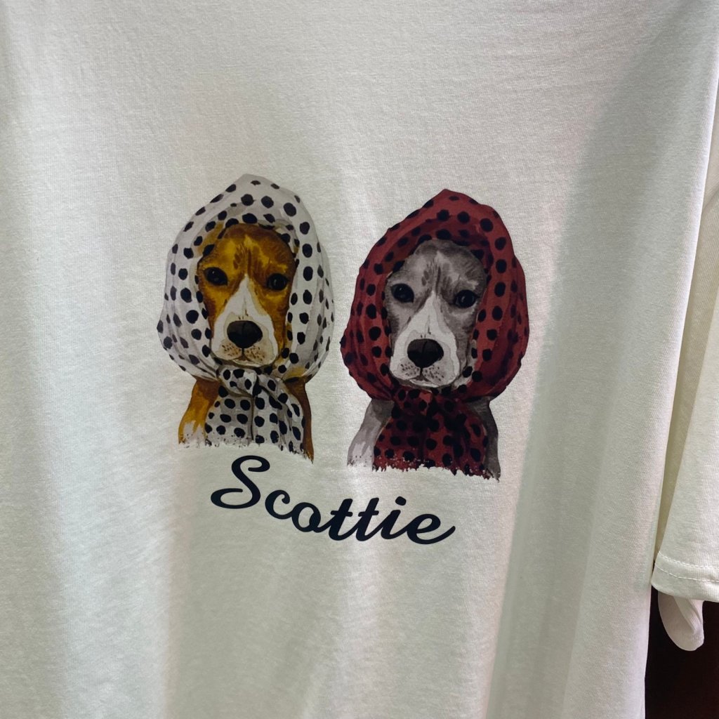 T1083 波點頭巾蘇格蘭梗印花圖案短袖T恤