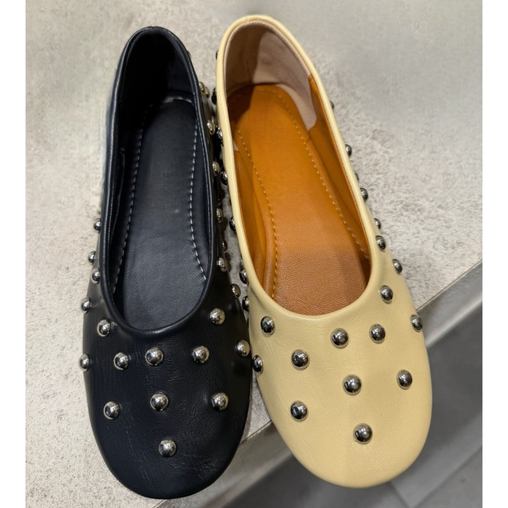 SHOES10102 個性釘珠圓頭平底鞋 (偏細)