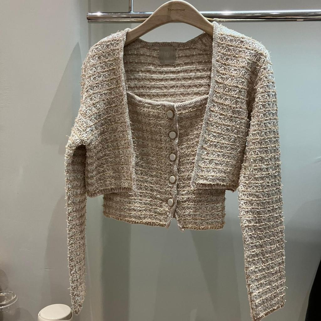 SET10142 法式紋理短款開襟兩件套