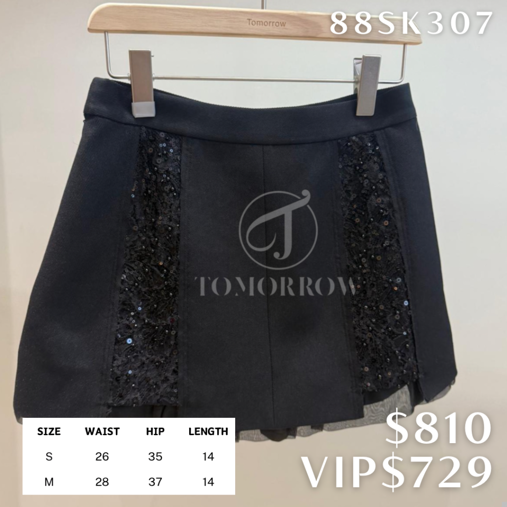 主頁 88SK307 高腰亮片拼接頭紗短裙