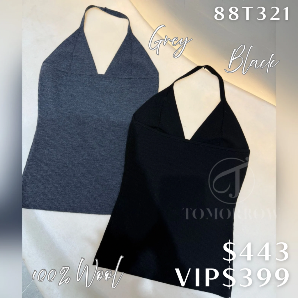 100%羊毛吊帶背心,掛脖V領設計超顯鎖骨,灰、黑兩色低調又性感🤫😍