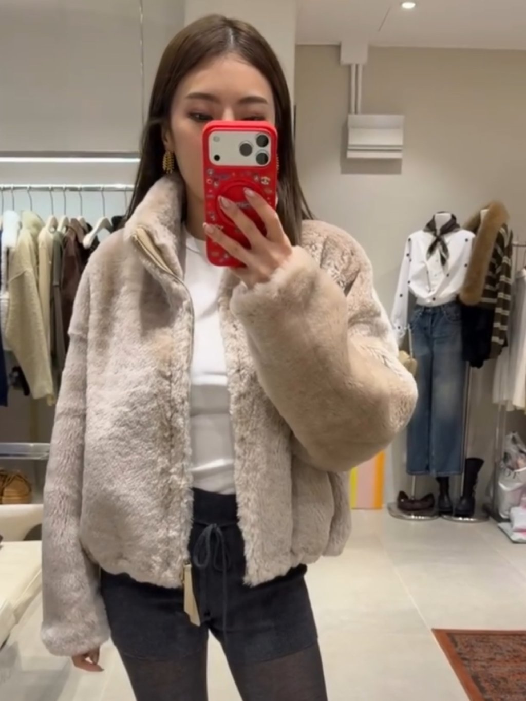 呢件Real Fur暖絨短身外套,用料柔軟細膩,觸感輕盈但包得實,着上身即刻有被毛毯包住嘅暖笠笠感。