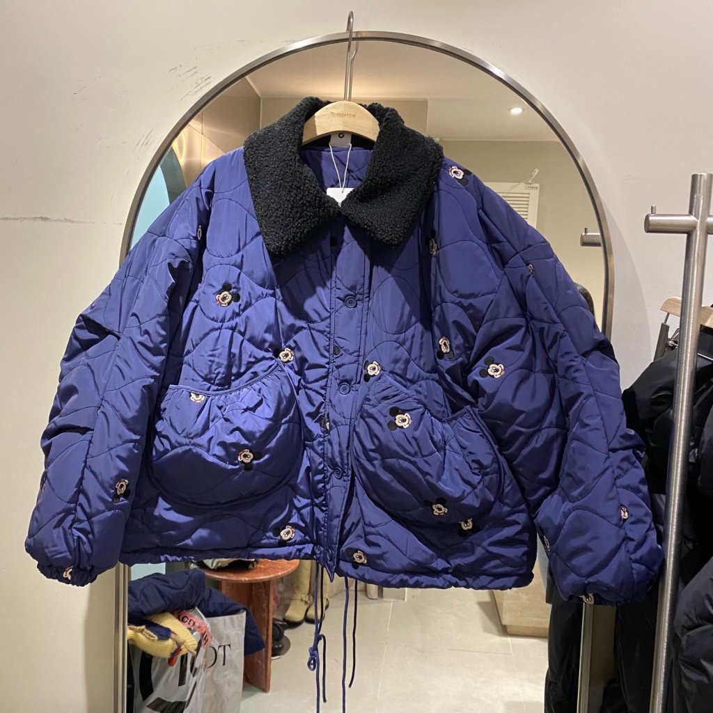 JK1263 菱格羊羔領米奇圖案夾克