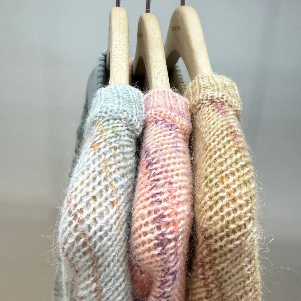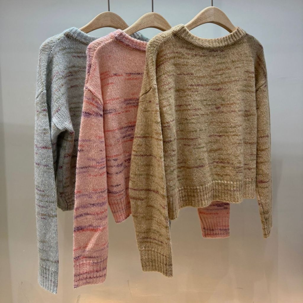 三色彩點羊駝毛混紡毛衣,採用15%羊駝毛加61%羊毛混紡面料,觸感軟綿蓬鬆又輕身,