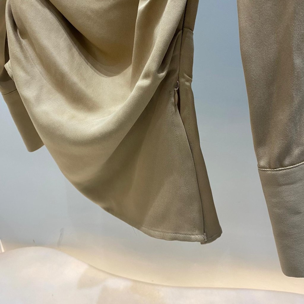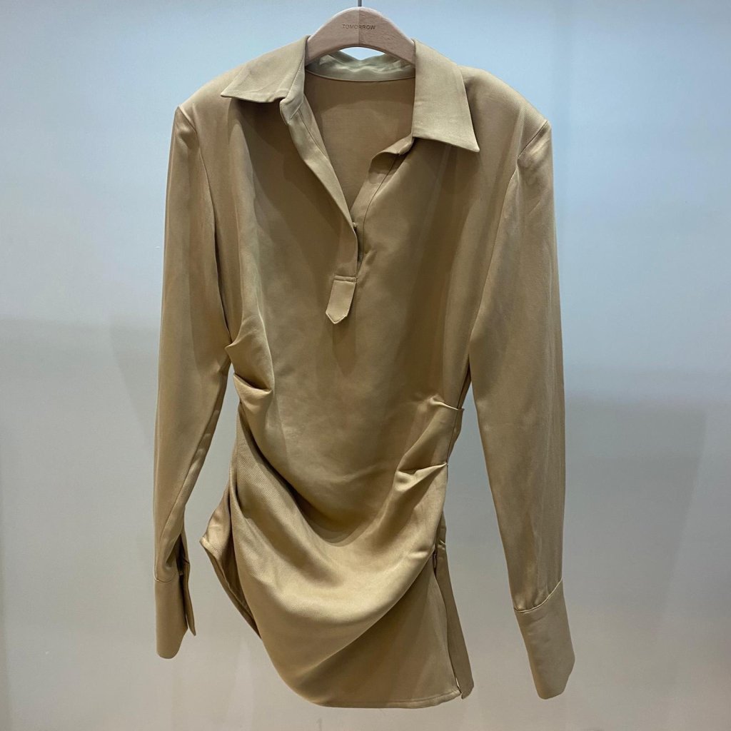 OPS108 高級感醋酸皺褶恤衫裙