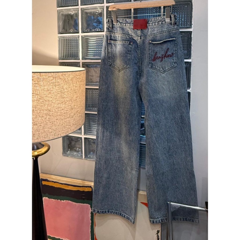 J142 復古洗水赤印直筒牛仔褲