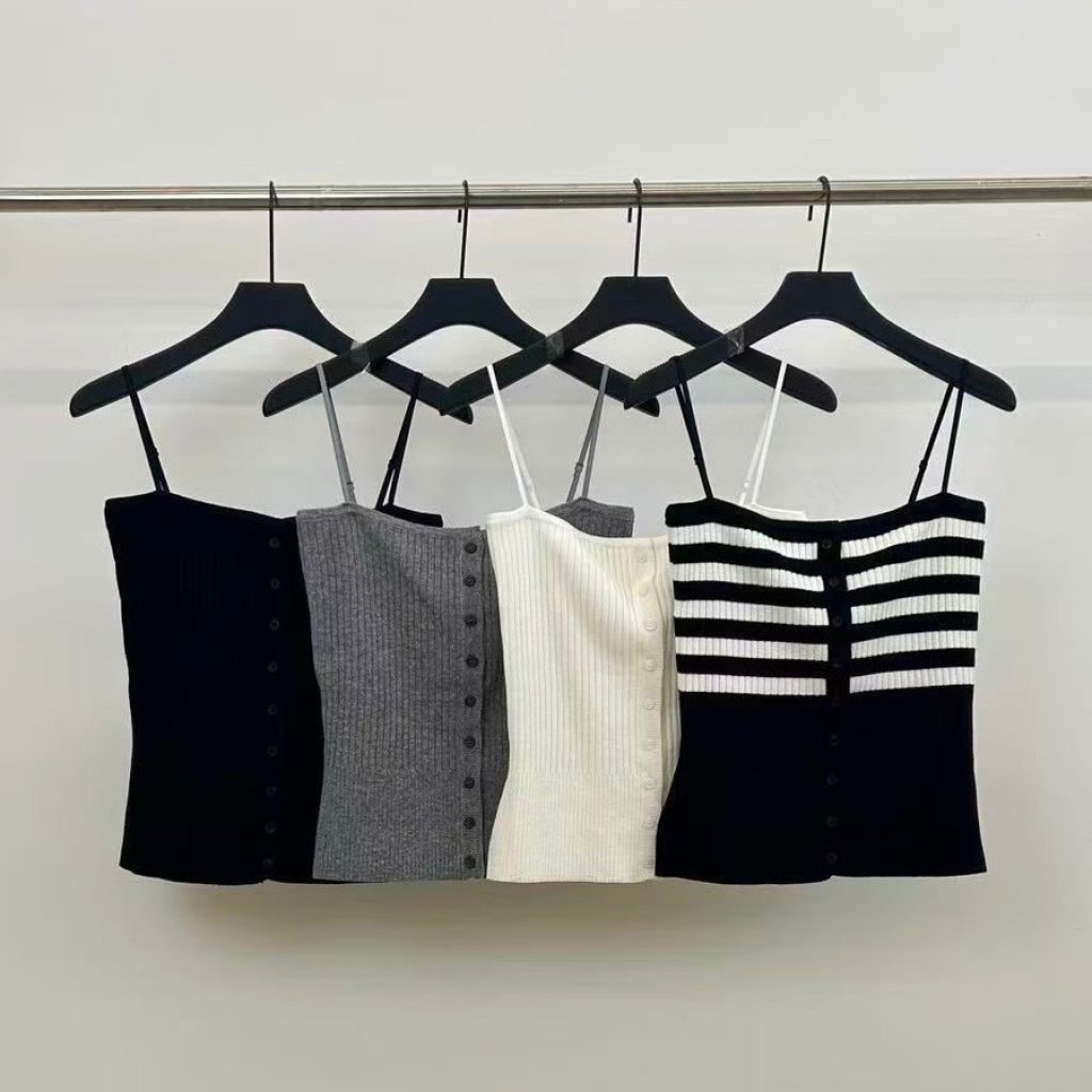 SET155 V領針織外套+排扣羅紋吊帶背心套裝