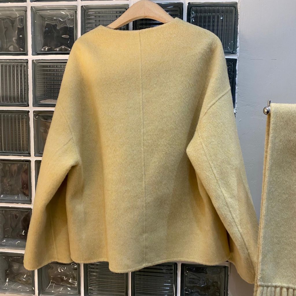 呢套奶油黃闊袖羊毛大衣連同同色圍巾一SET,色調溫柔乾淨,好啱秋冬想揀淺色外套又怕太膨脹!