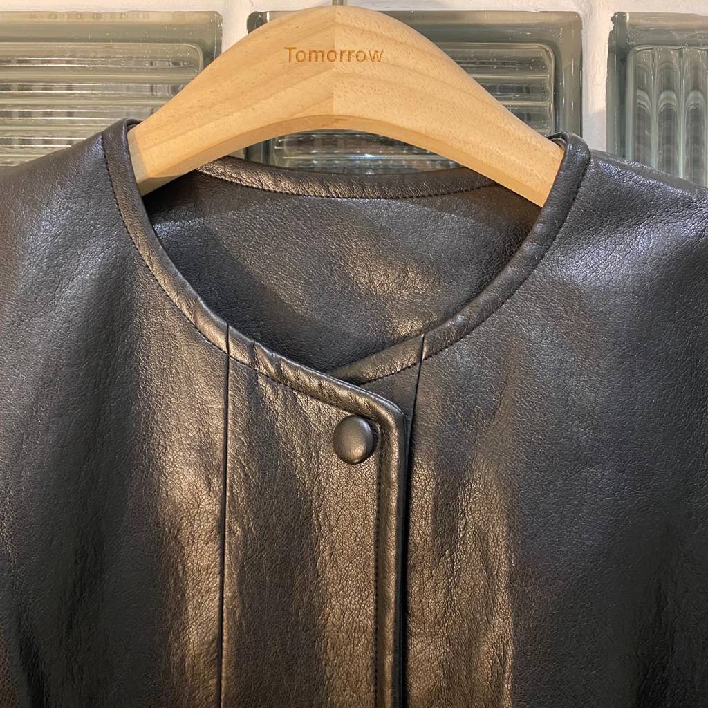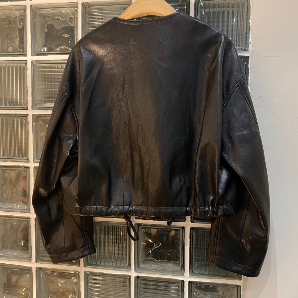 呢件圓領短版皮外套係無領設計,比一般皮褸斯文易襯,內搭高領、恤衫甚至hoodie都冇問題。
