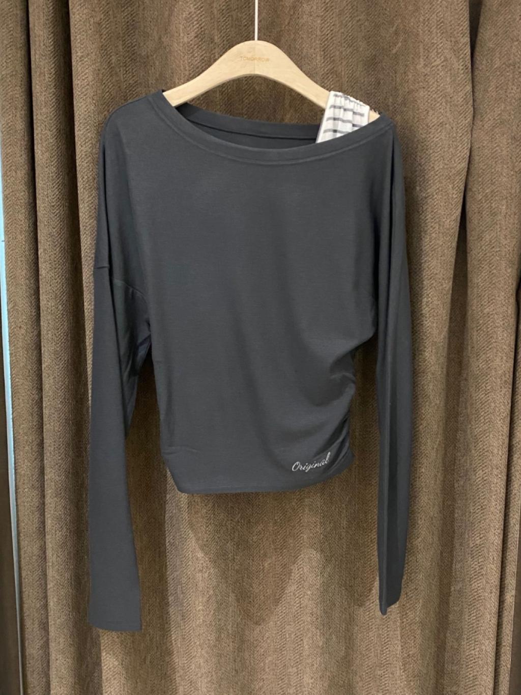 T178 斜肩修身長袖上衣