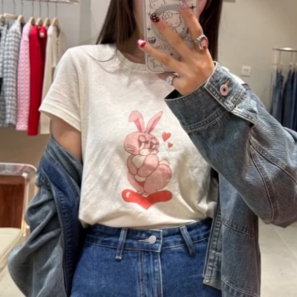 T216 粉紅抱抱兔印花圖案短袖T恤