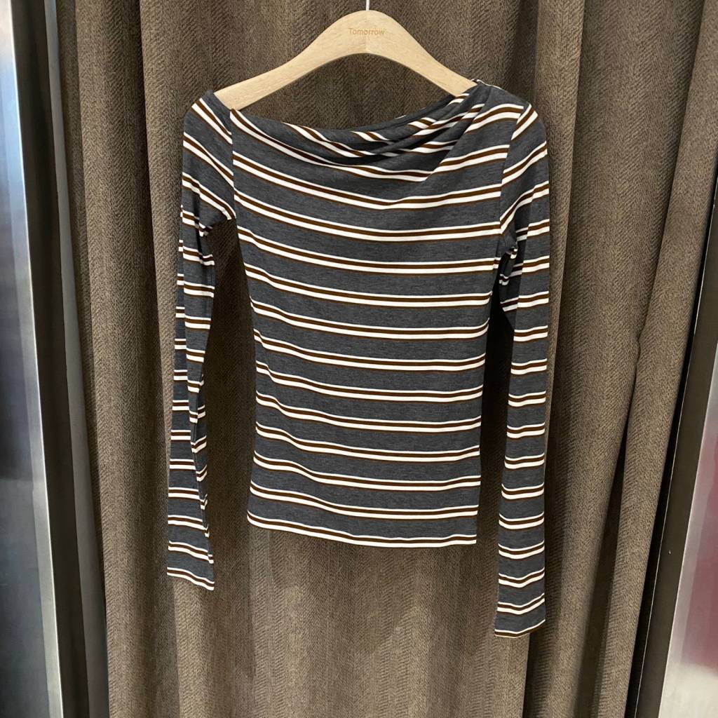 T218 橫間斜肩貼身長袖上衣