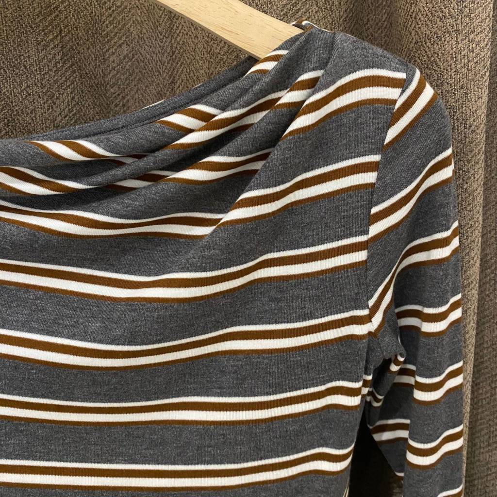 橫間配色低調易襯,削肩領位設計令鎖骨位更突出,單穿或做打底都好好睇。