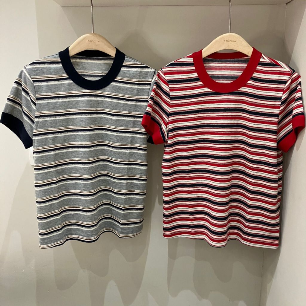 粗橫間配撞色圓領同袖口,帶少少復古學院風,好適合春天出街☁️