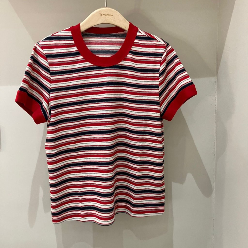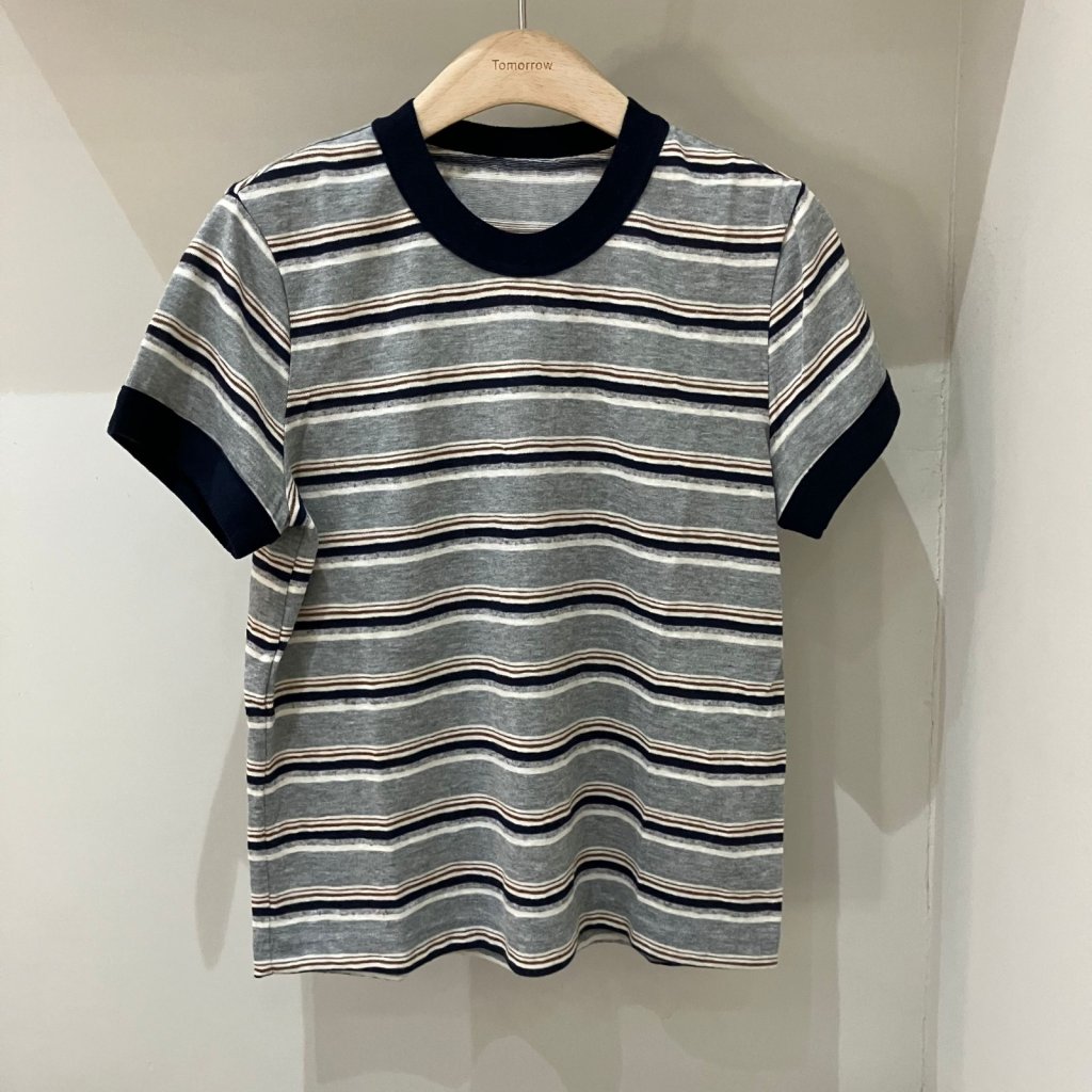 T222 圓領橫間短袖針織上衣