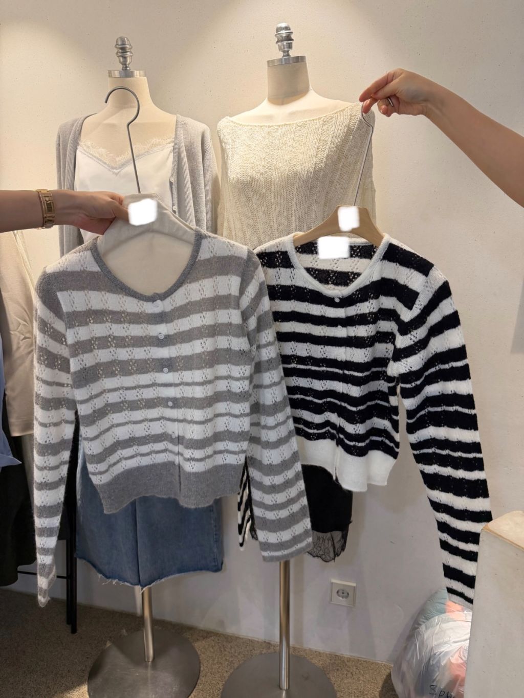 條紋中間有小小鏤空圖案,唔會太厚重,春夏冷氣位當小外套啱啱好🌤️