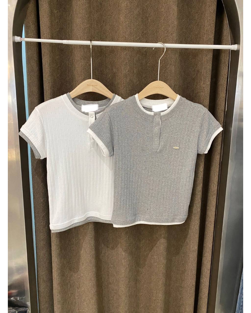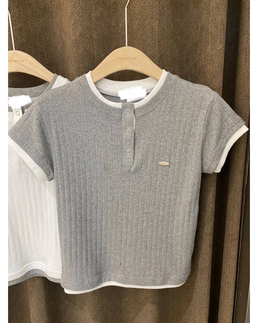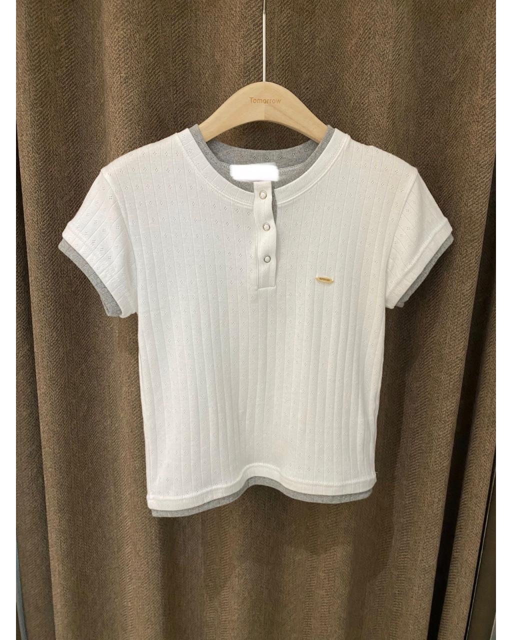 T339 | 坑紋半開襟假兩件短袖上衣