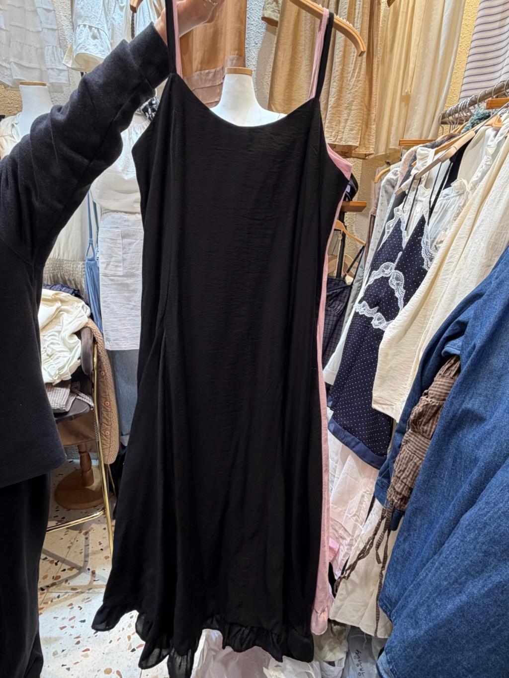 垂墜布料行路飄逸,裙腳細荷葉邊增添少女感,粉紅溫柔、黑色顯瘦百搭,可單穿亦可內搭TEE✨✨