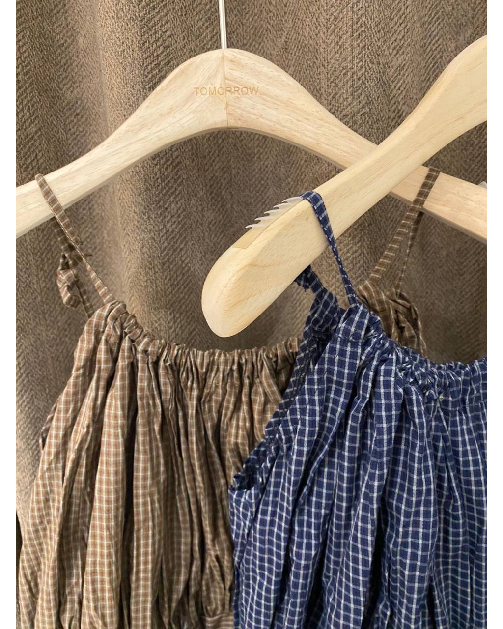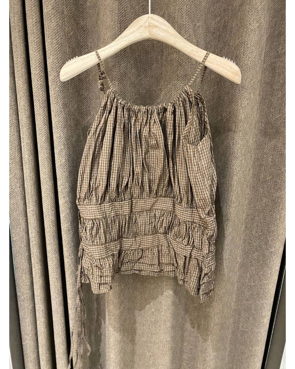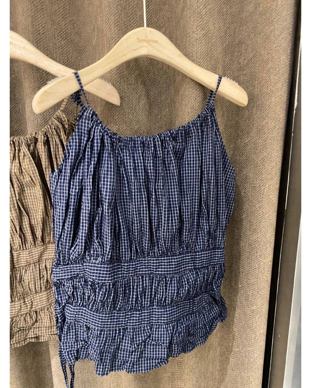 T376 | 細格抽摺吊帶上衣