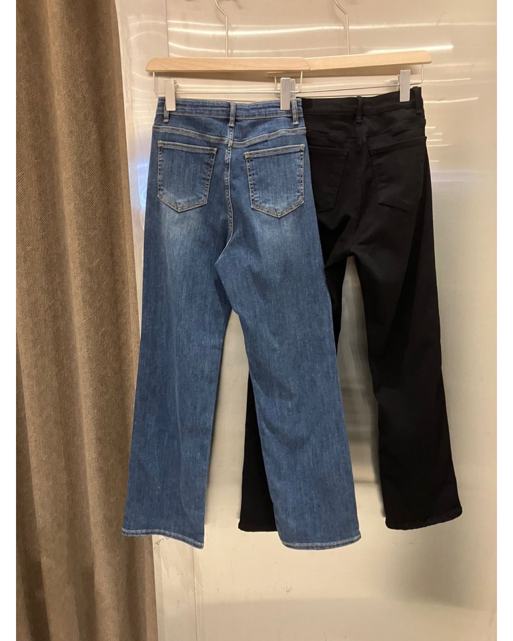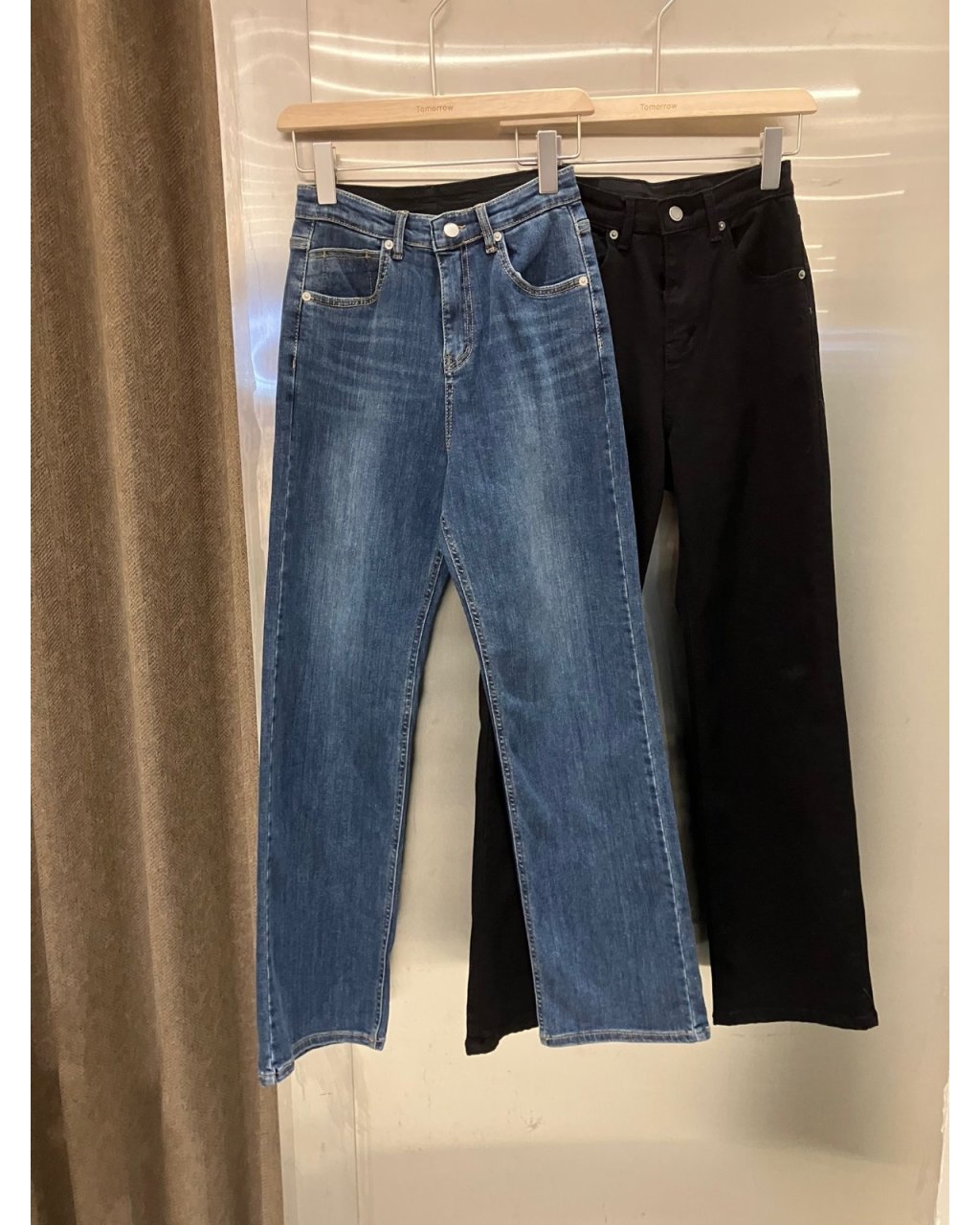 高腰直腳剪裁,藍色帶輕微刷色、黑色簡潔利落,布料有挺度但不會太硬,日常配 TEE、恤衫或 KNIT 都顯腿長。