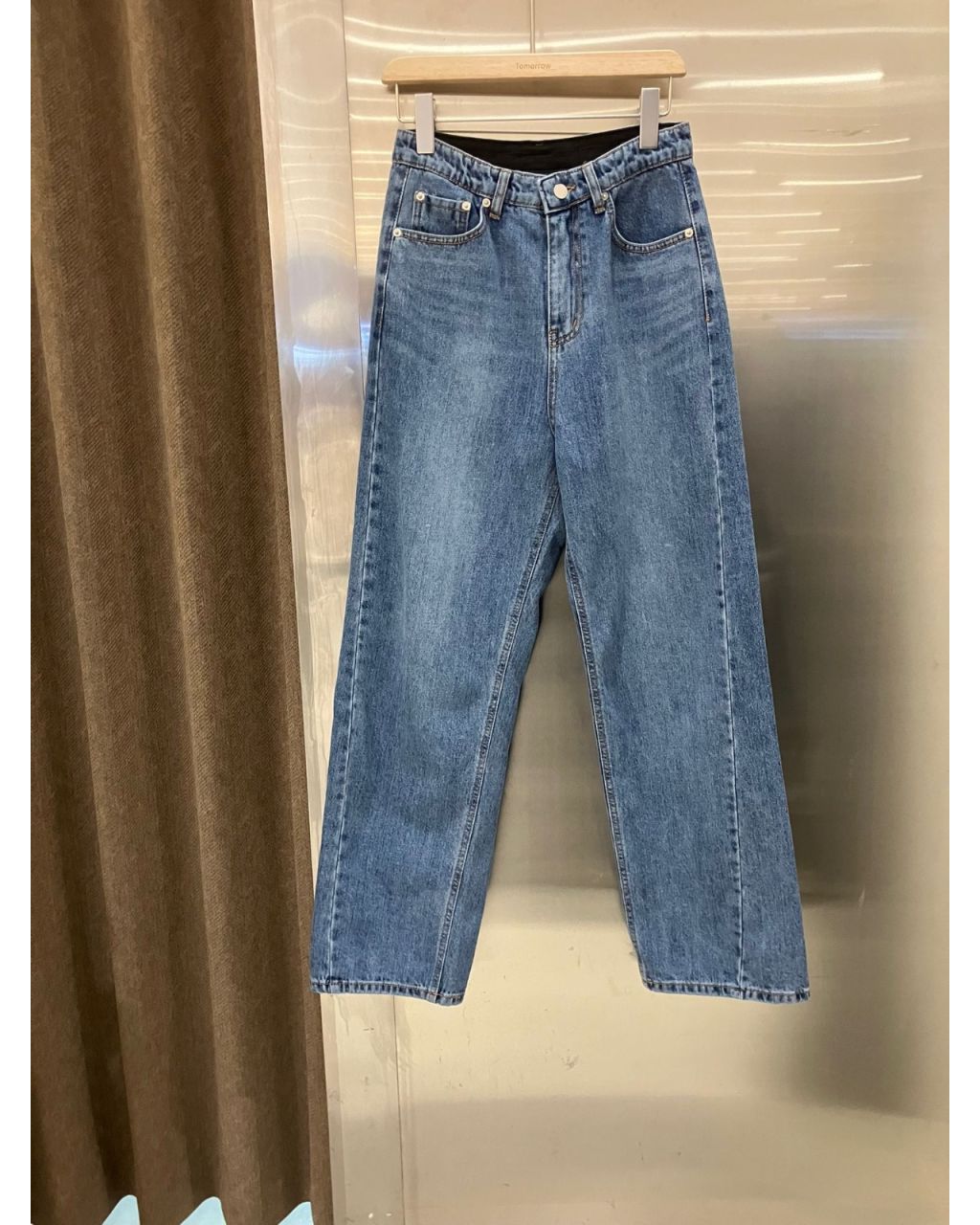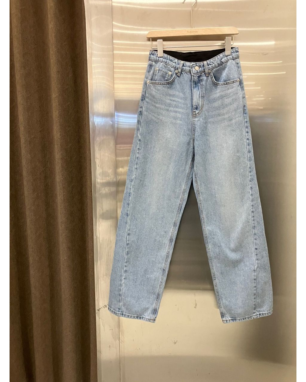 高腰直腳剪裁,藍色帶輕微刷色、黑色簡潔利落,布料有挺度但不會太硬,日常配 TEE、恤衫或 KNIT 都顯腿長。
