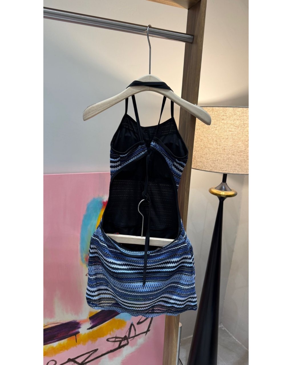 針織紋路拉長身形線條,藍色漸層好顯白,沙灘影相超上鏡。
