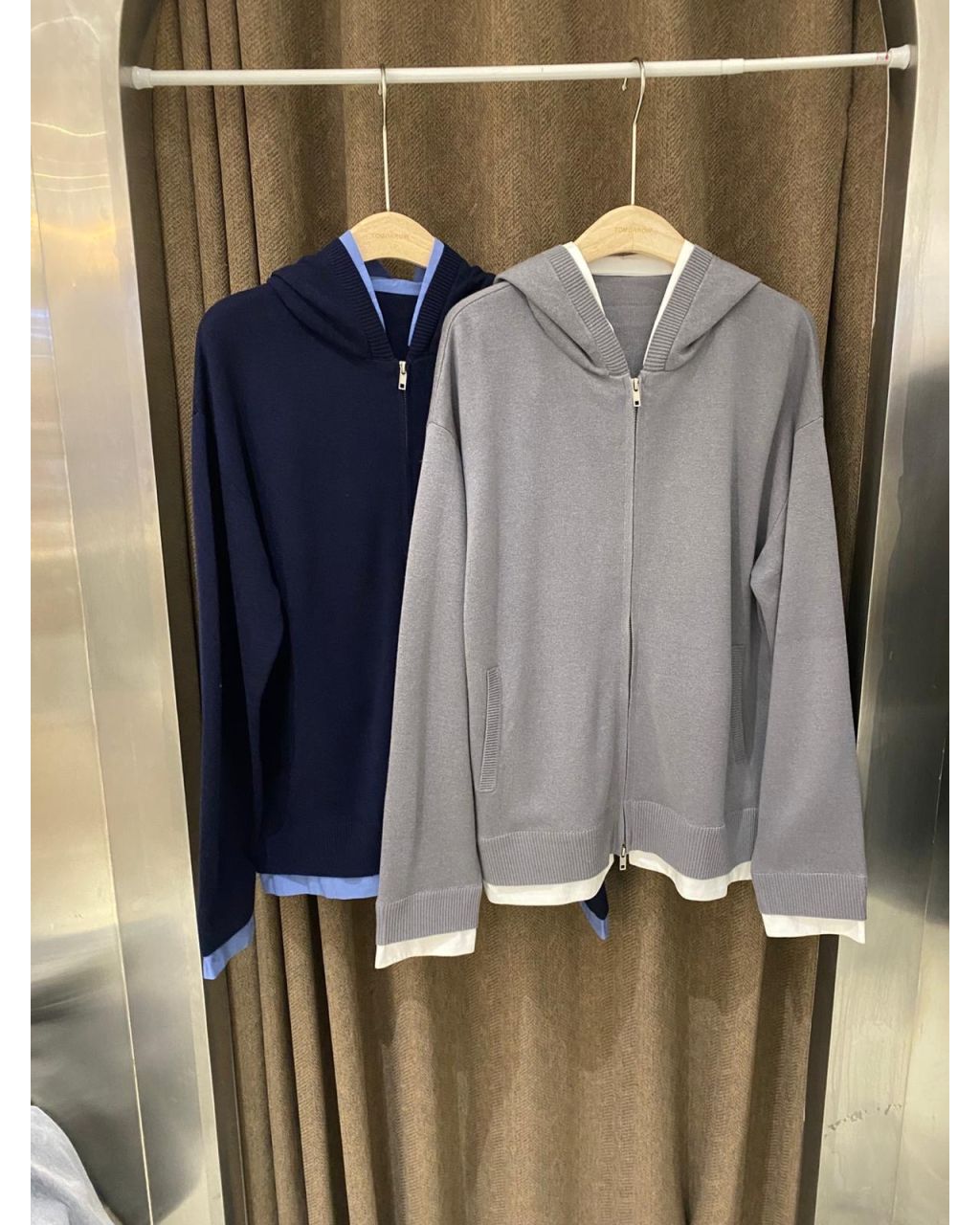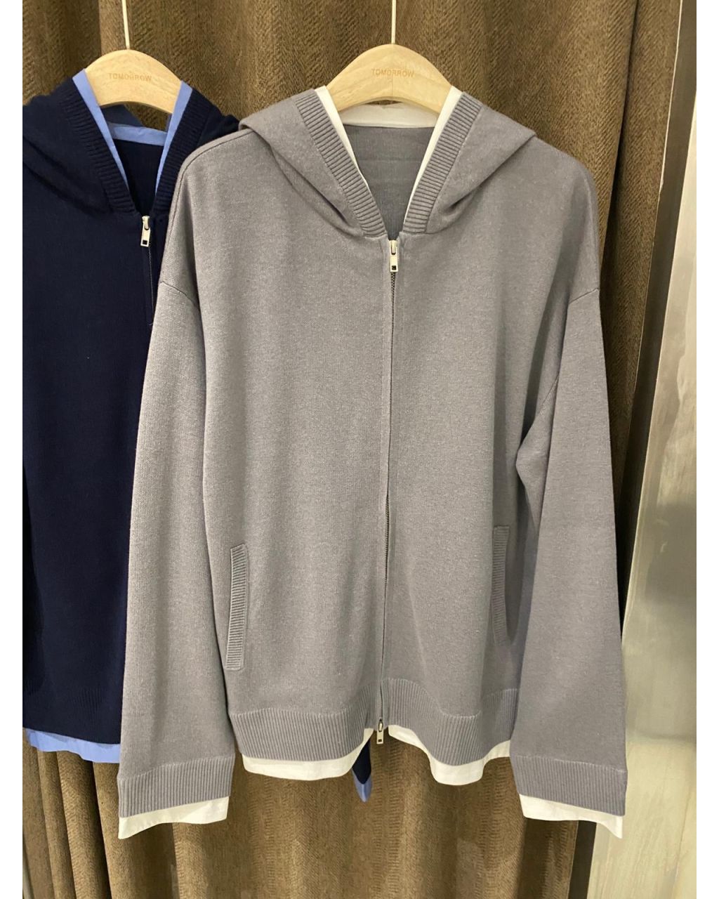 細冷衫質地加連帽設計,拉鍊開合好方便,深藍同灰色都百搭,春秋可以單穿、冬天可以做中層保暖!