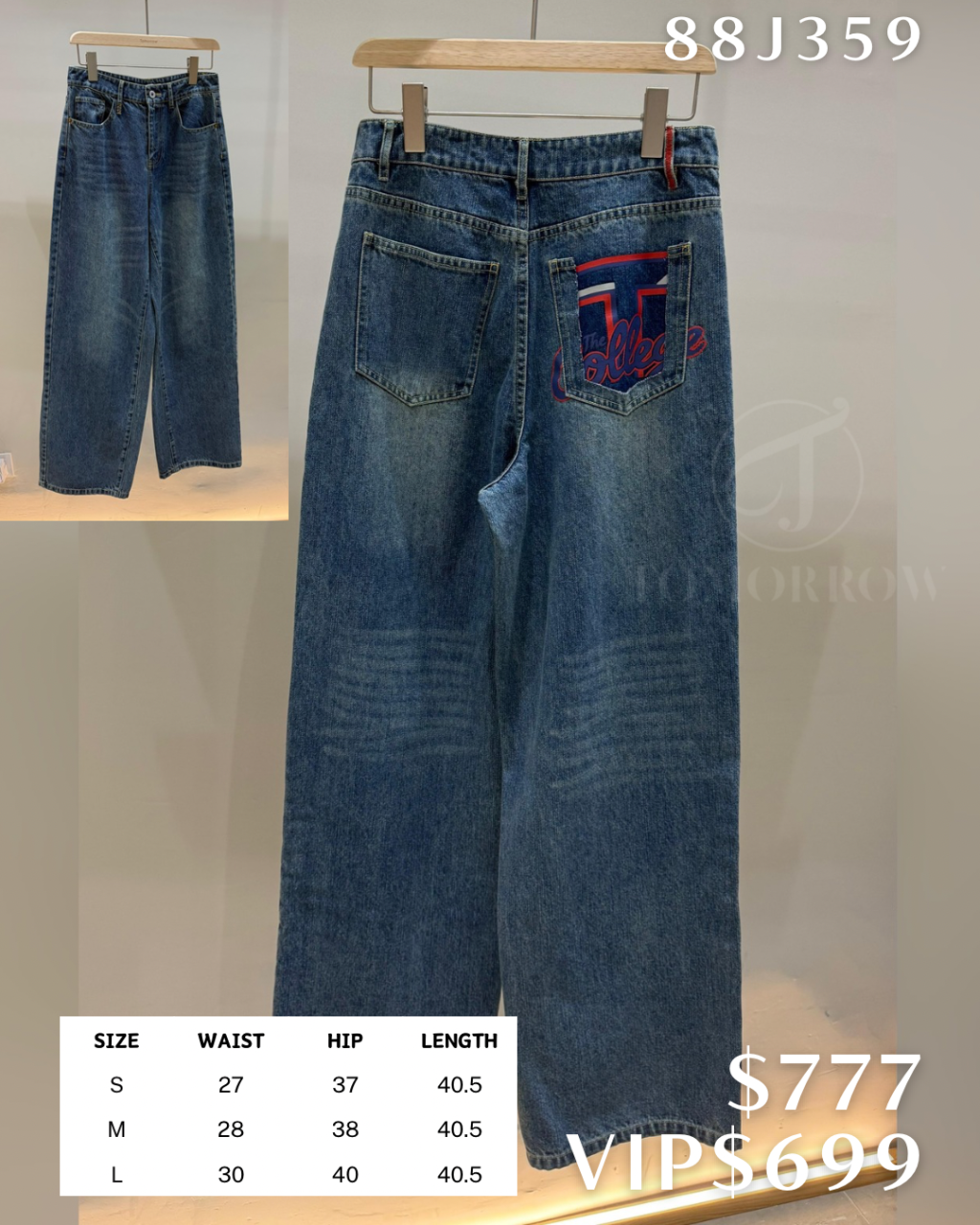 主頁 88J359 | 刺繡口袋直腳牛仔褲