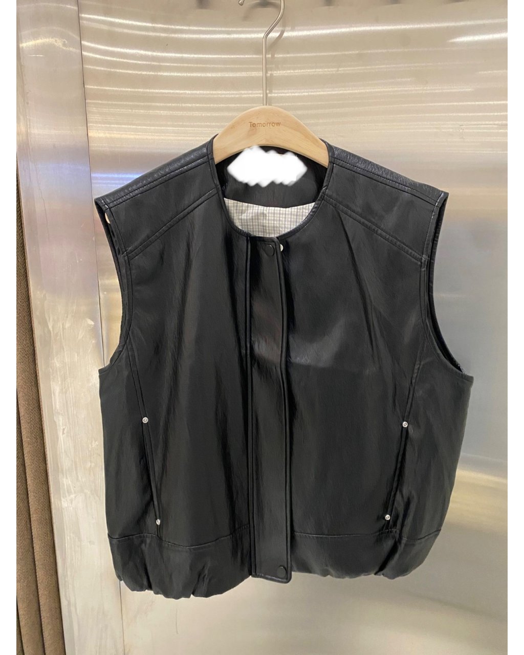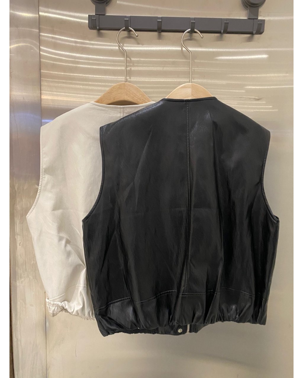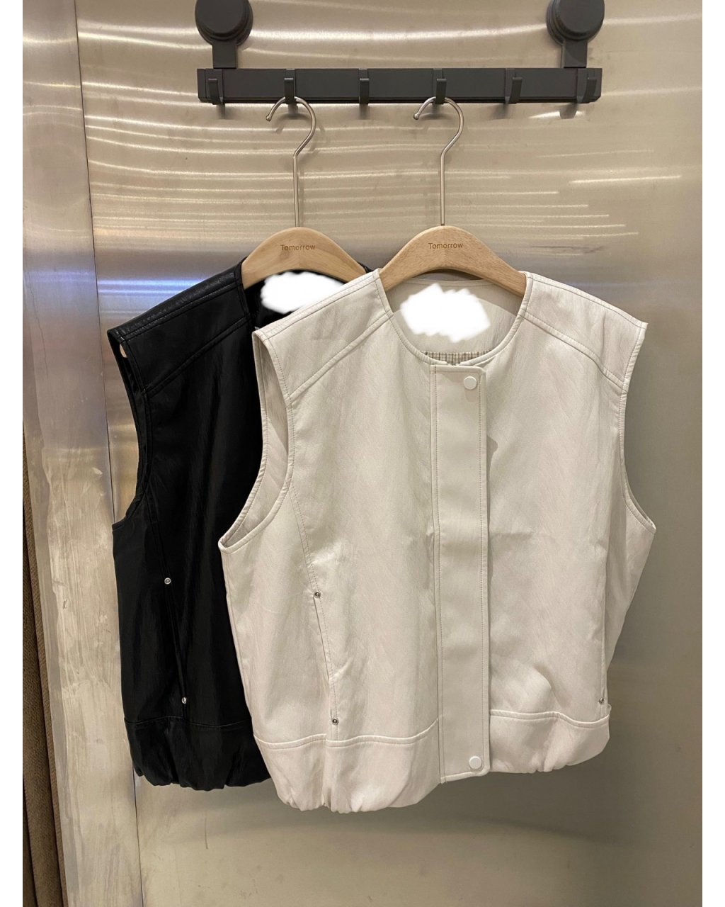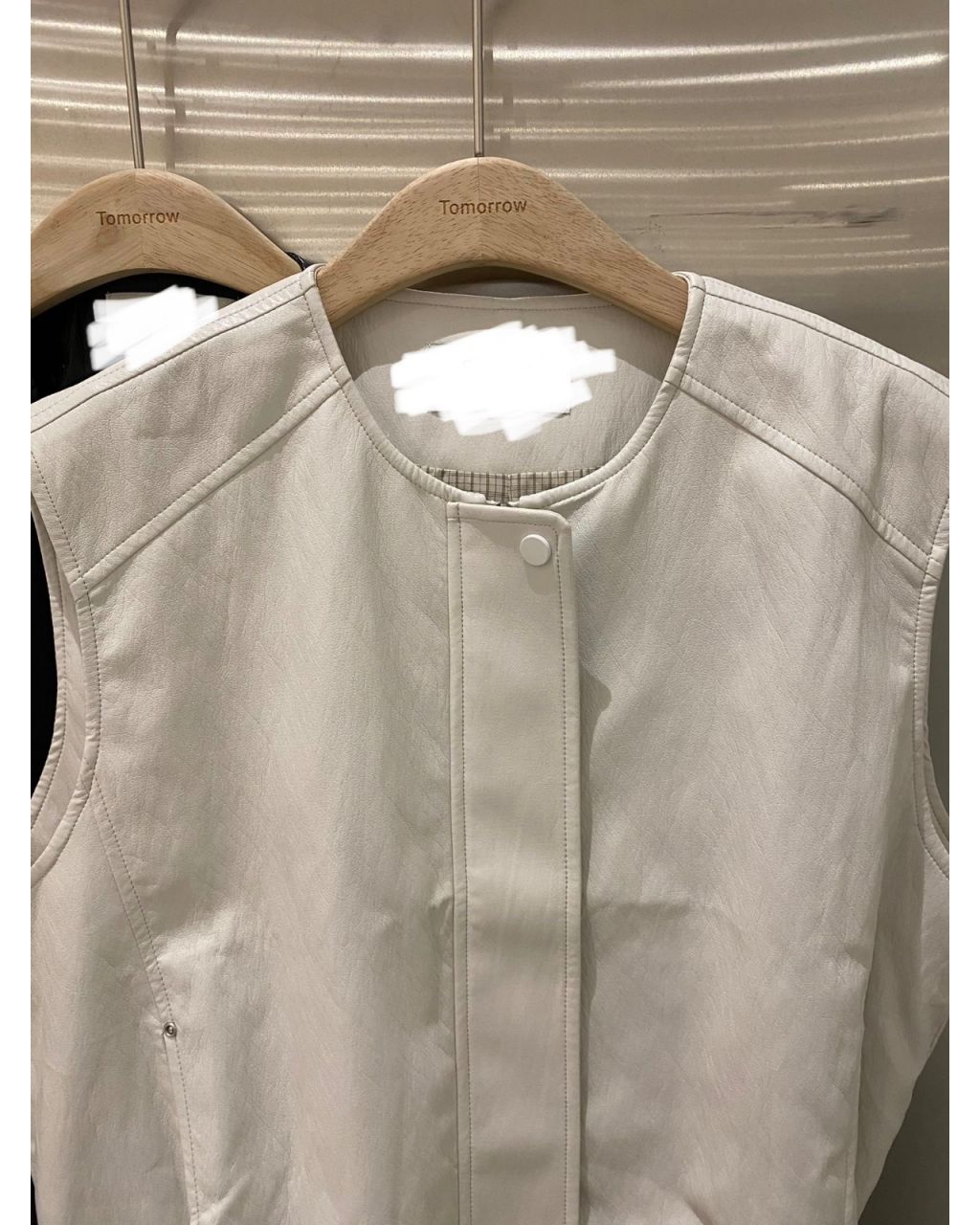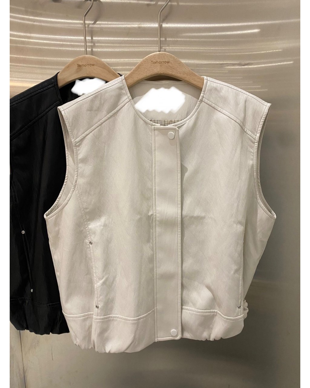 啞面仿皮質感配簡潔圓領無袖設計,下襬有橡筋收摺,短身剪裁好襯高腰褲裙,內搭 Tee 或背心即刻多一件型格 layer。