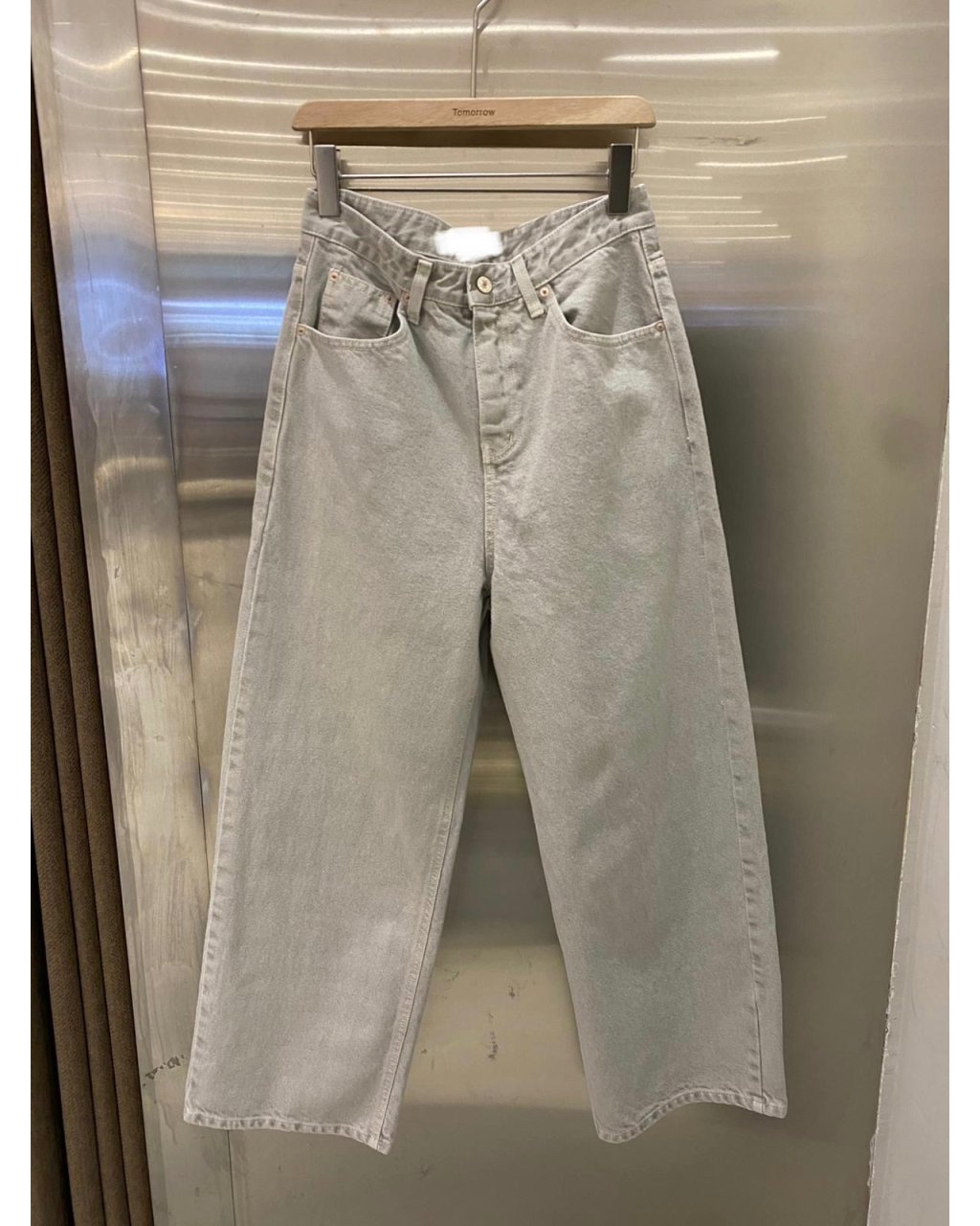 挺身淺灰牛仔布,高腰配闊腳九分褲長,褲管寬鬆好遮肉,襯波鞋或涼鞋都好有型。