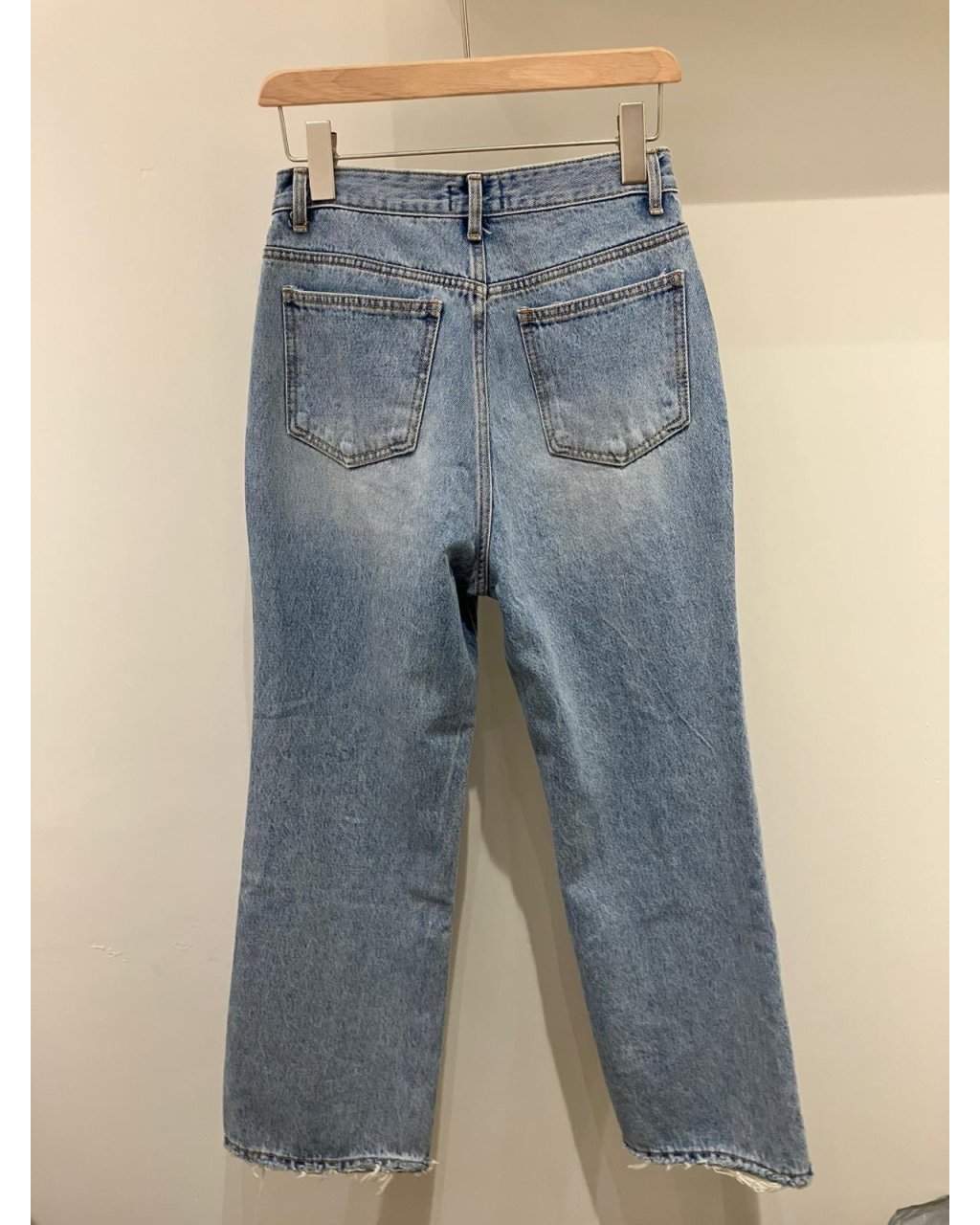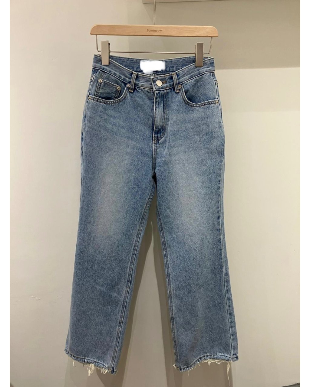淺藍牛仔布高腰剪裁,直腳版型微闊好遮肉,褲腳做毛邊設計增加隨性感,配波鞋或平底鞋都好易襯。
